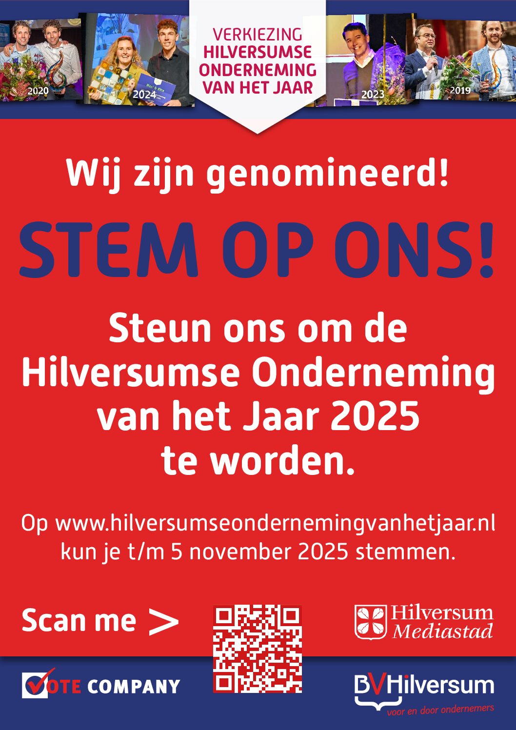 Al 25 jaar zetten we ons met veel plezier in voor onze klanten. Deze nominatie voelt als een geweldige erkenning voor ons hele team én de mooie samenwerkingen die we dagelijks mogen aangaan. Wil jij ons helpen aan deze titel? Stemmen is heel makkelijk (en snel)! Zo werkt het: Ga naar de link: https://www.hilversumseondernemingvanhetjaar.nl/ Kies eerst een favoriet bij Horeca Daarna bij Retail En vervolgens kun je bij Dienstverlening op Dijck & de Ridder stemmen! Vergeet niet je stem te bevestigen via de mail die je ontvangt (check ook je spamfolder!) We zouden het fantastisch vinden als jij op ons…